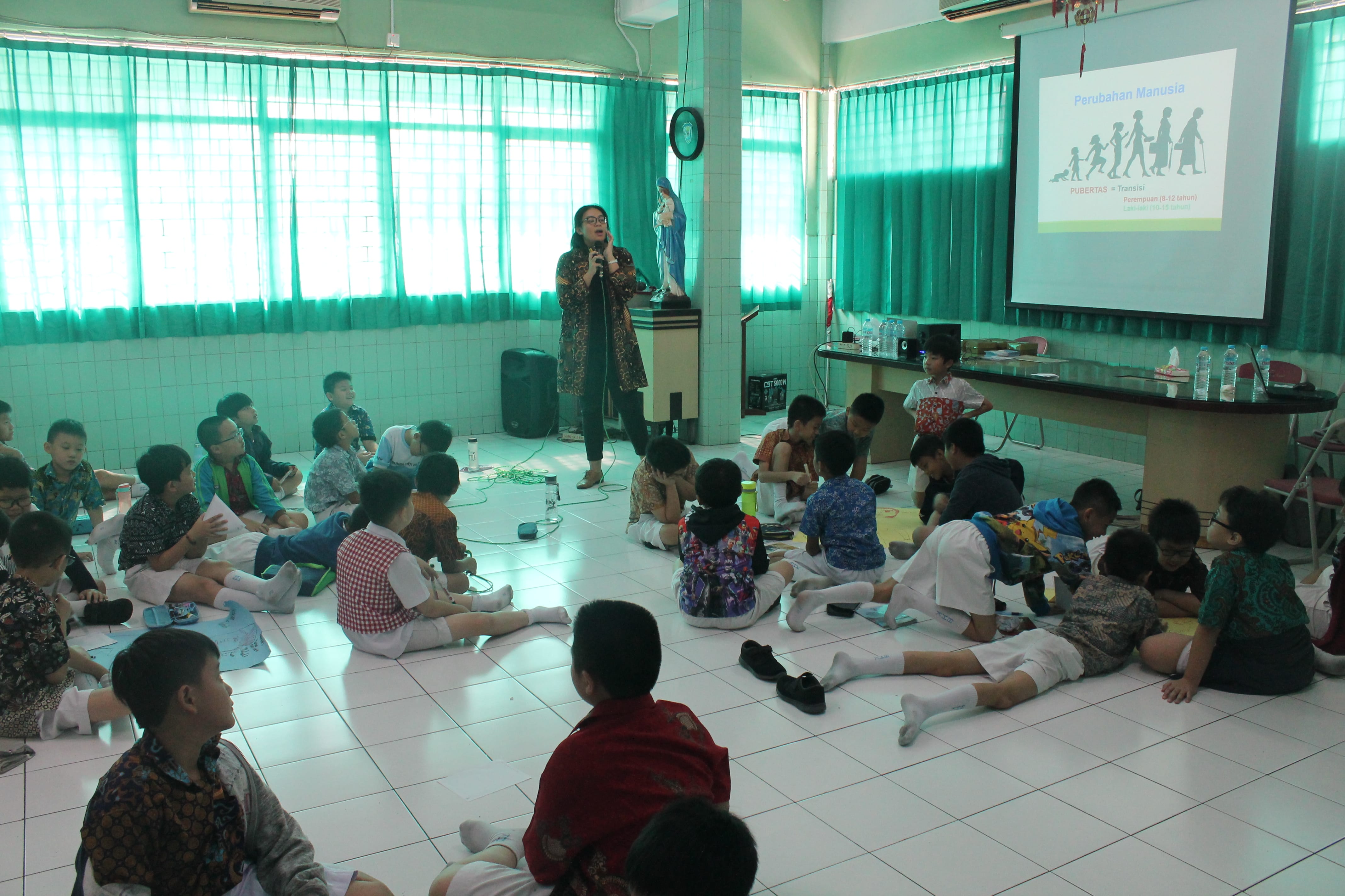 Seminar ini membahas tentang persiapan masa pubertas yang diikuti oleh siswa sekolah dasar kelas 4. Dalam seminar ini dijelaskan mengenai masa transisi yang akan dihadapi oleh peserta ketika memasuki masa remaja. Peserta tidak hanya mendengarkan materi yang disampaikan, namun juga melibatkan diri dalam kegiatan berkelompok. Selama sesi, dibuka kesempatan bagi para peserta untuk menyampaikan pemikiran dan pendapat mereka. Berbagai pertanyaan juga diajukan oleh peserta untuk menjawab rasa ingin tahu mereka mengenai masa pubertas ini.